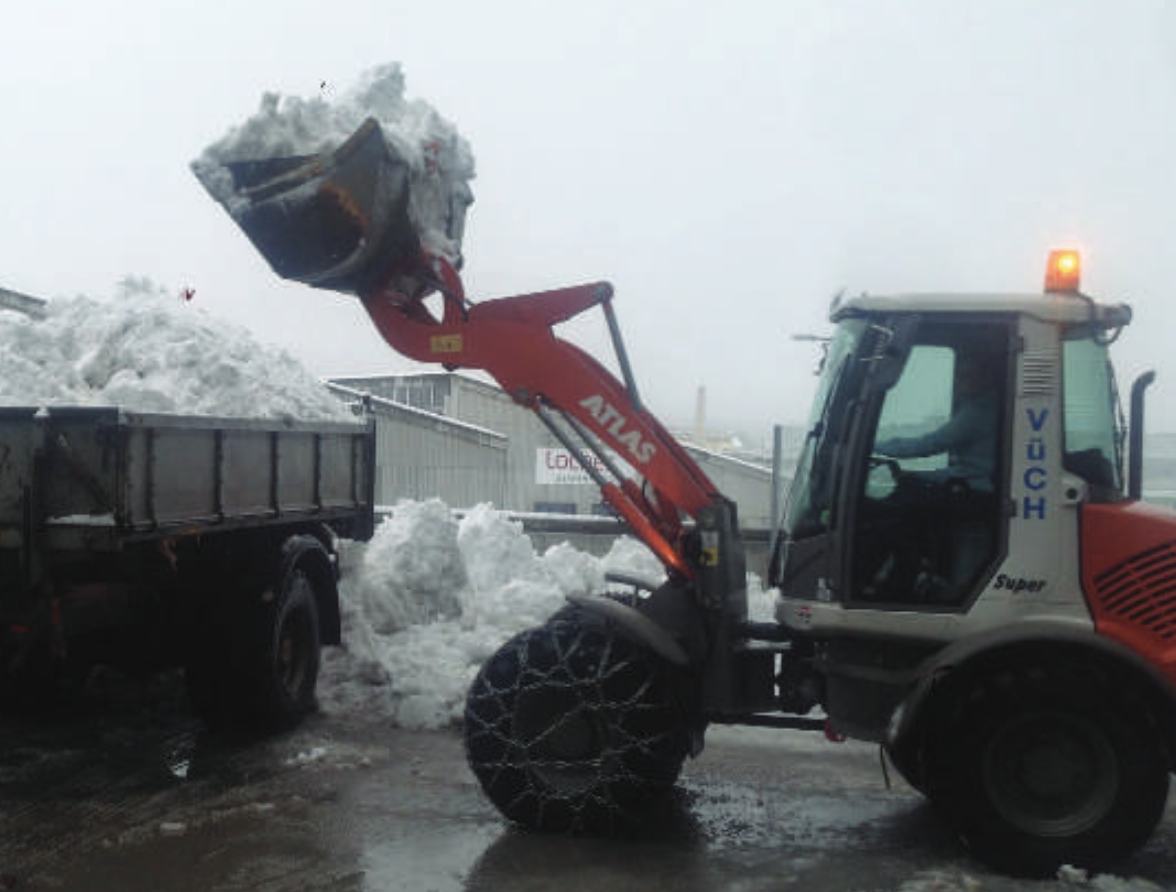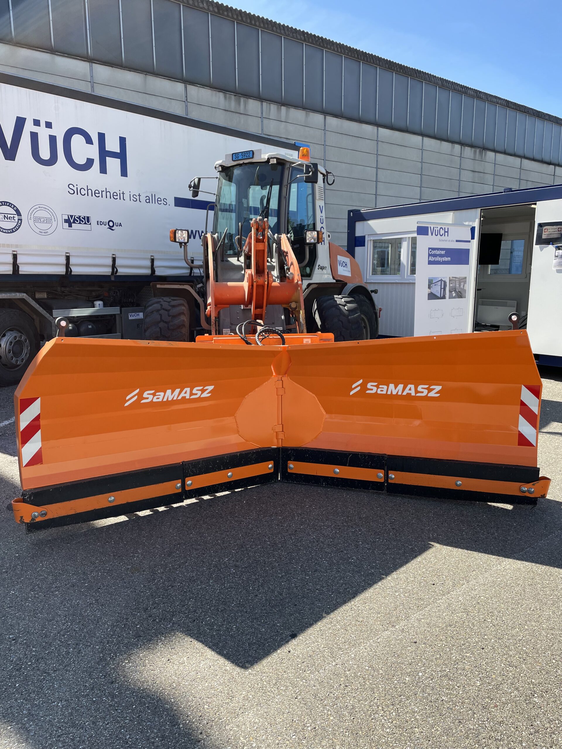 Der Radlader kann optional mit einer Schaufel, Gabel oder Schneepflug bestückt werden.
