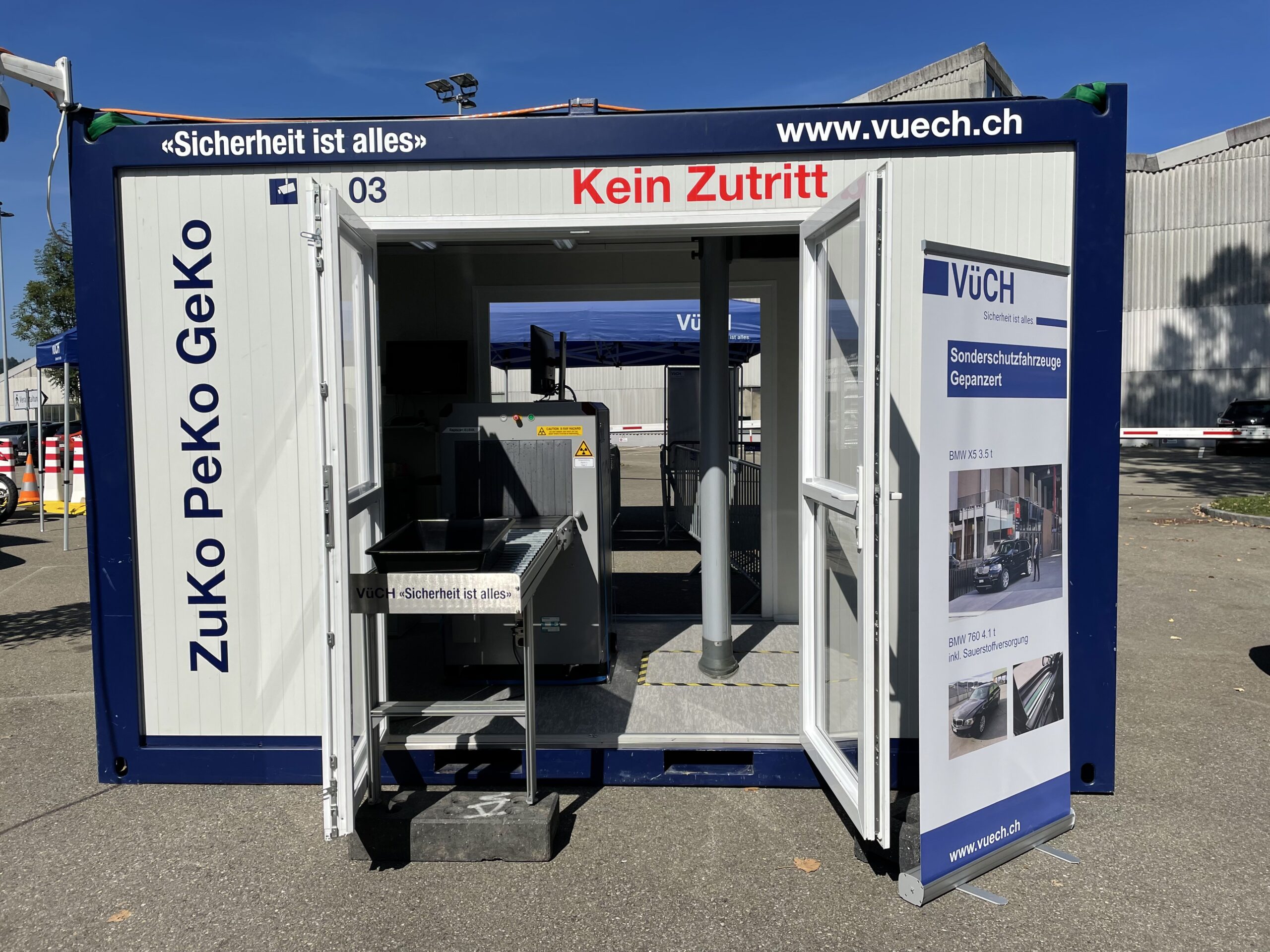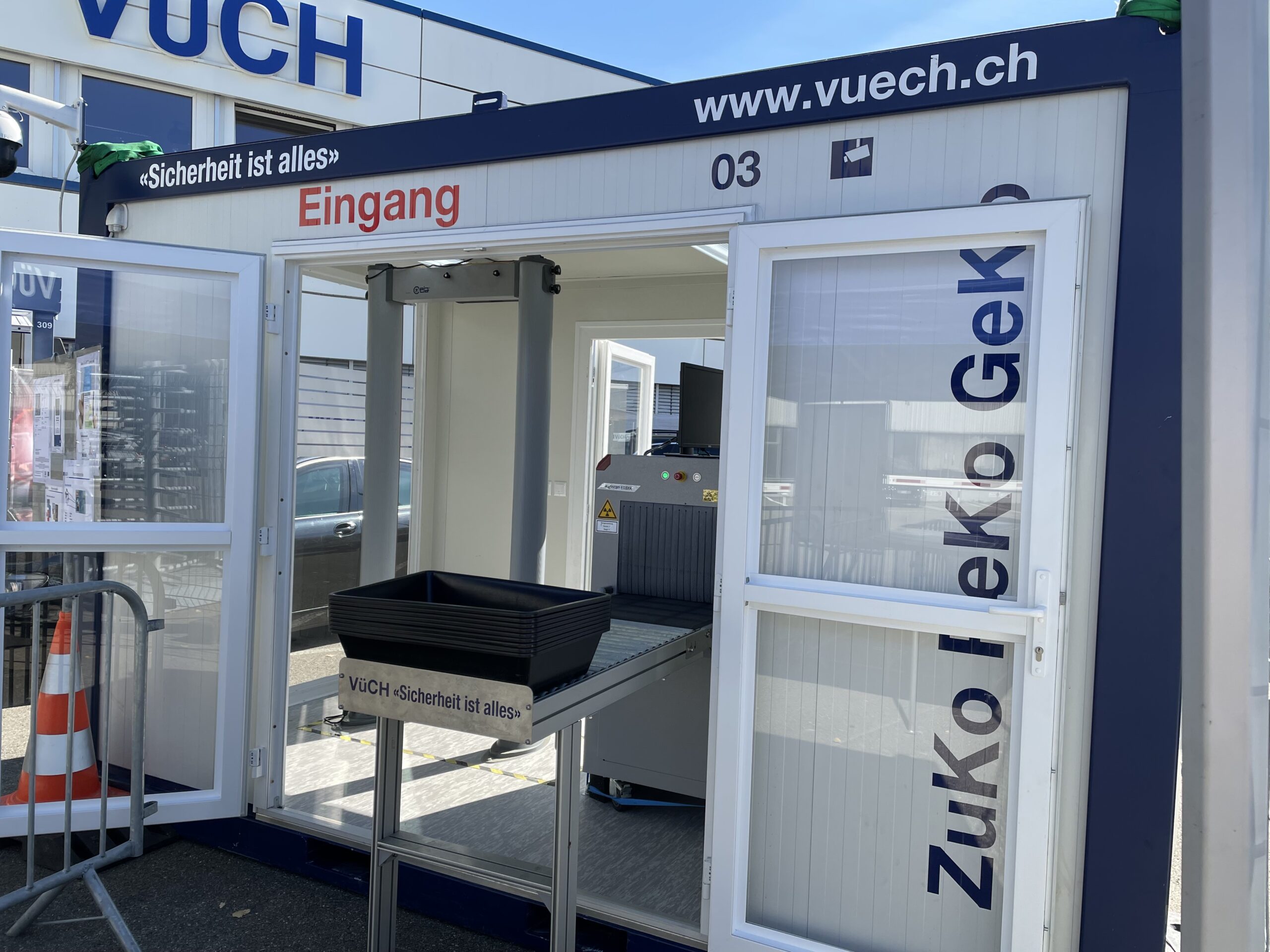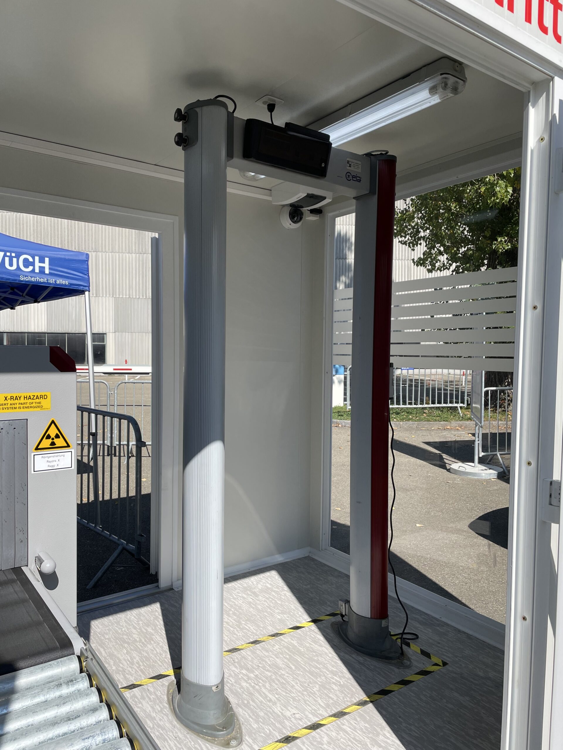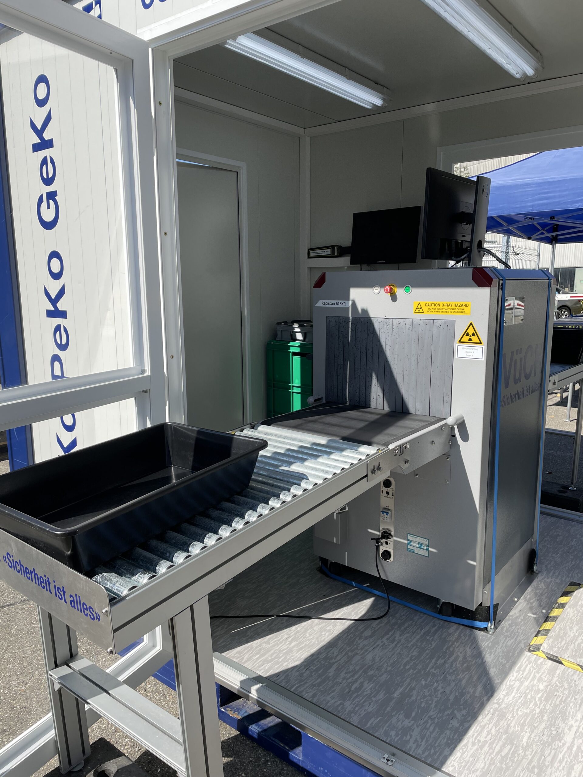 Der ZuKo / PeKo / GeKo – Container beinhaltet ein Röntgengerät Rapiscan 618XR und einen Metalldetektor.